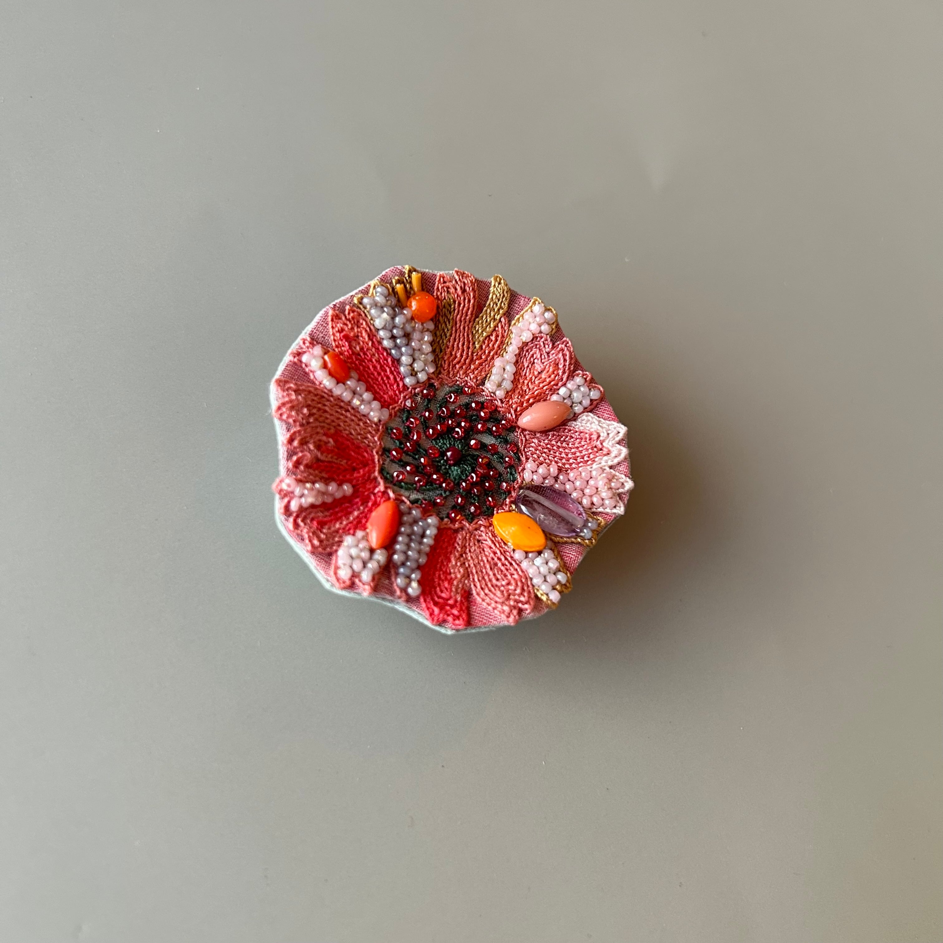 ピンクオレンジの花ブローチ