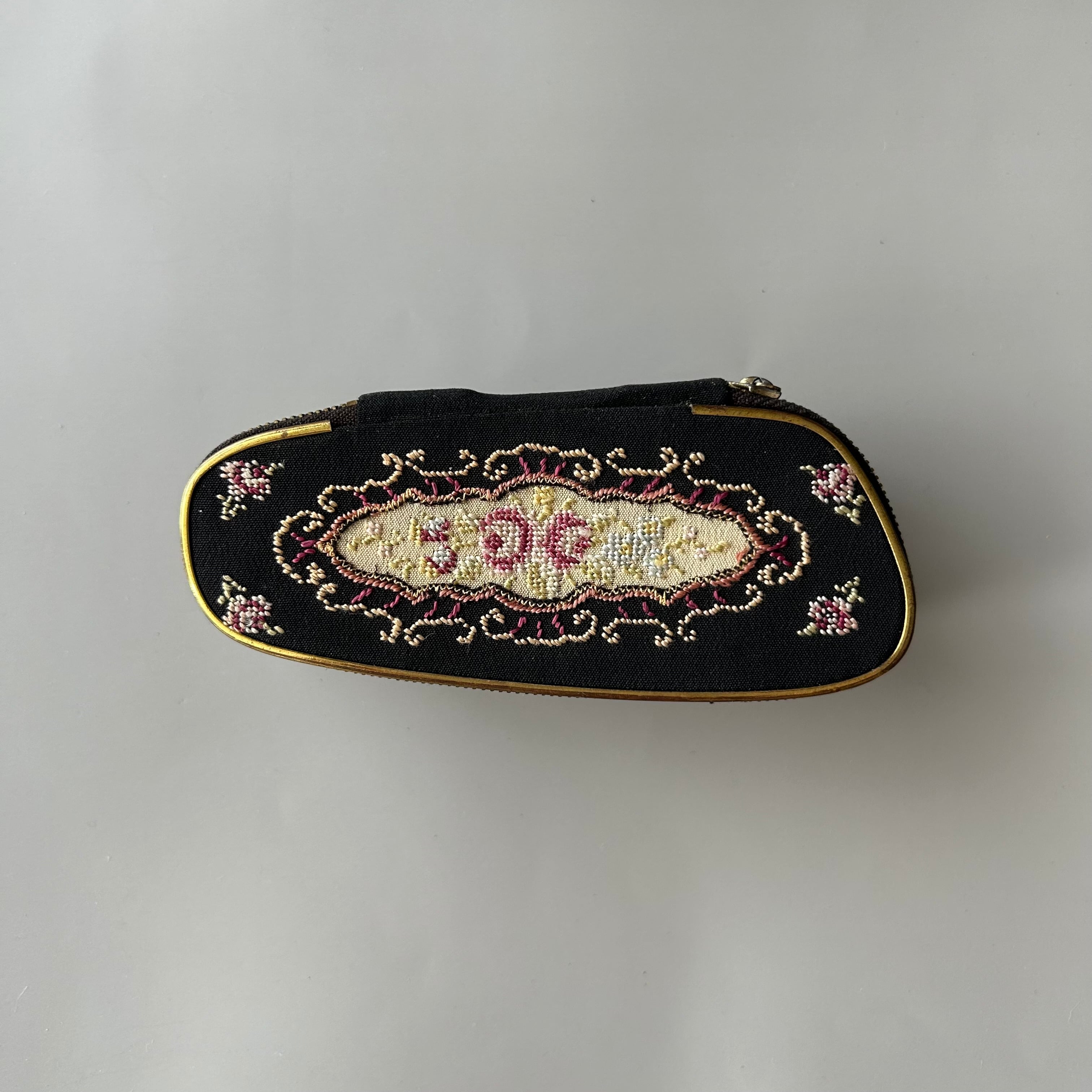 入れ物の蓋の表面には、シルク糸で細かい刺繍が施されています。